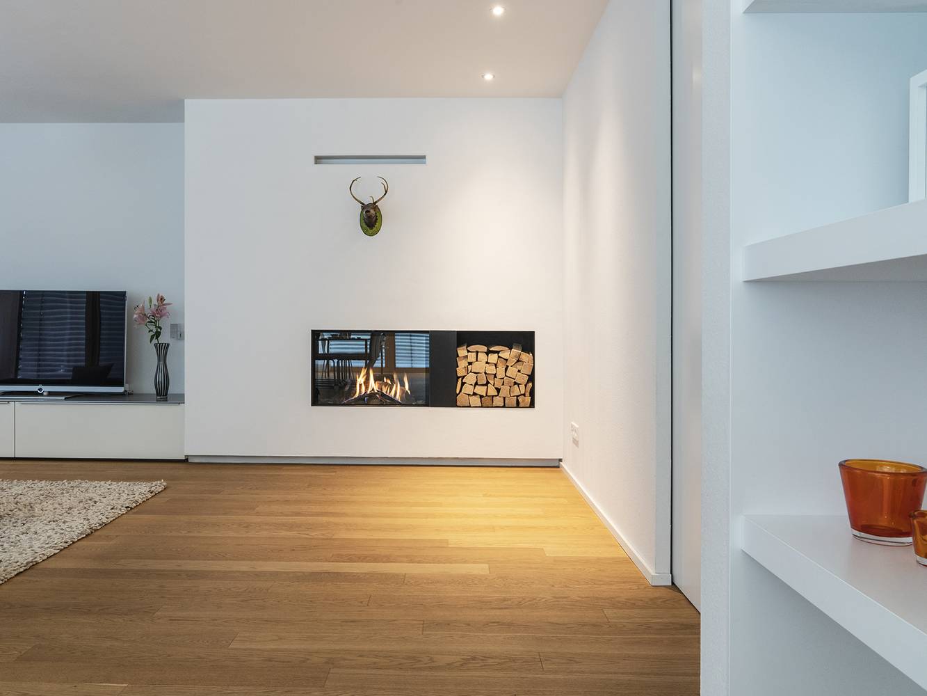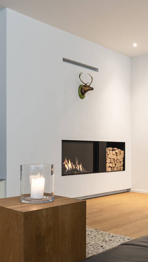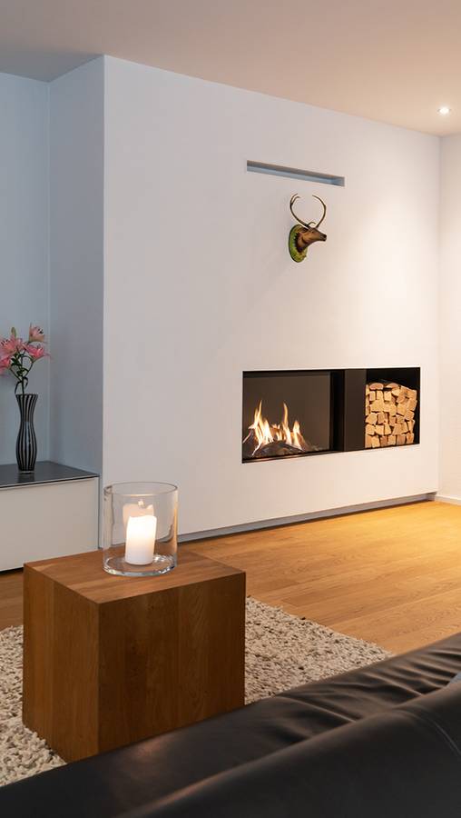 Der größte Unterschied besteht darin, dass hinter der Scheibe ein Holzscheitimitat aus Keramik liegt. Viele Geräte können auf Wunsch in Wände und Spezialmöbel integriert werden. Ach ja: Zum Heizen müssen Sie nicht einmal vom Sofa aufstehen: Eine Fernbedienung liefern wir selbstverständlich mit.